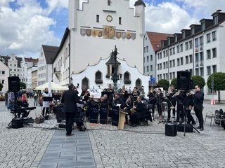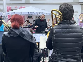 Wir konnten zum ersten Mal in dieser Gruppenstärke beim Tag der Musik mitspielen. Nach ein paar verregneten Tagen zeigte sich das Wetter von seiner guten Seite, auch wenn es für die Jahreszeit noch ziemlich kühl war. Die Zuhörerinnen waren begeistert von der schwungvollen Musik.